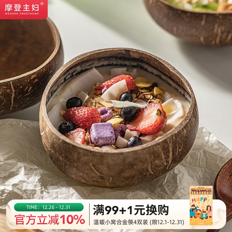 摩登主妇酸奶碗带勺水果沙拉家用2025新款早餐燕麦片天然椰子壳碗