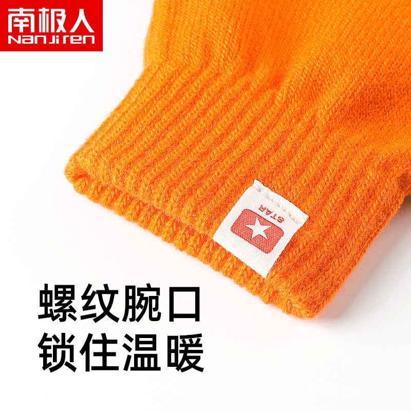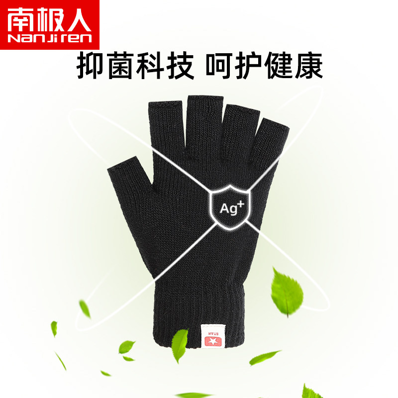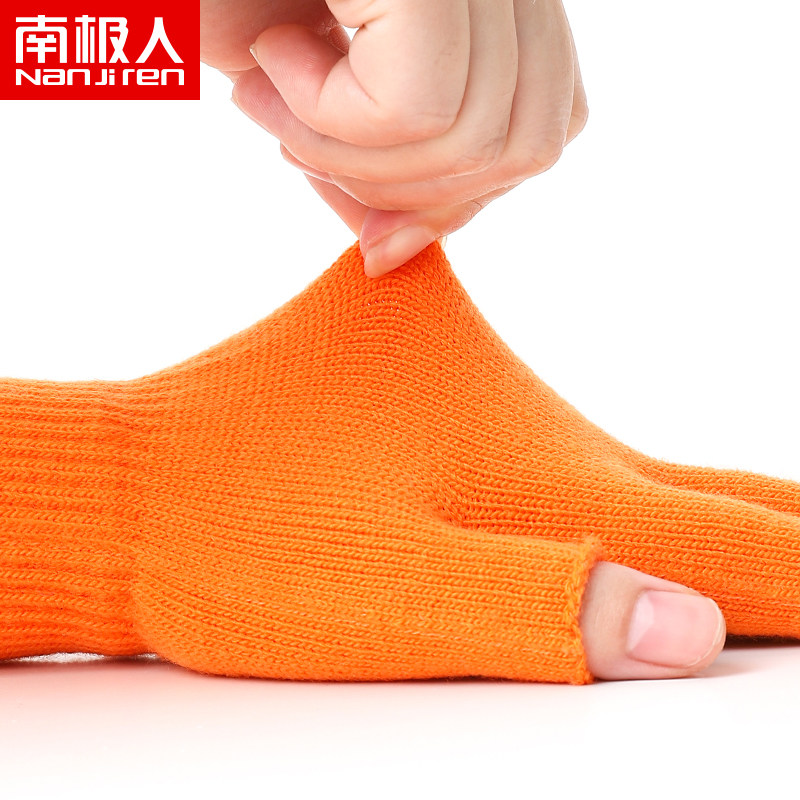 南极人毛线手套女冬天露指针织保暖骑行开车彩色写字可爱半指男H