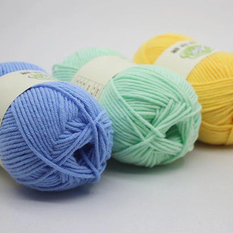 乐织4股精梳棉牛奶毛线团手工编织diy钩针花束玩偶材料包宝宝毛衣