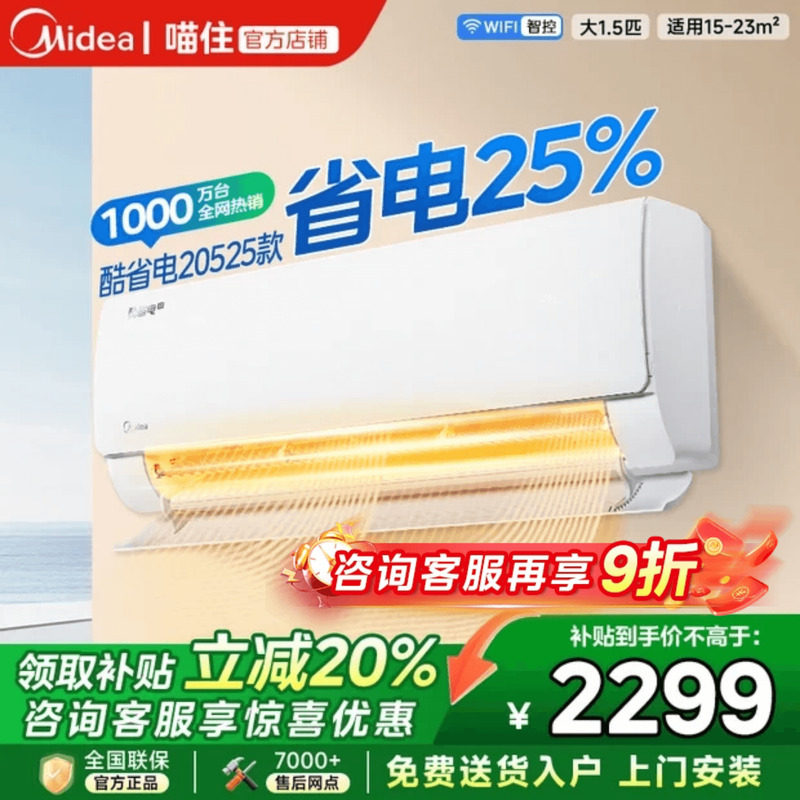 美的空调酷省电Pro大1匹1.5匹一级能效变频冷暖家用挂机官方正品
