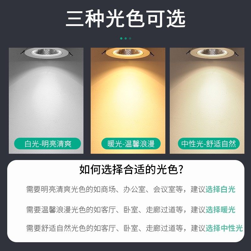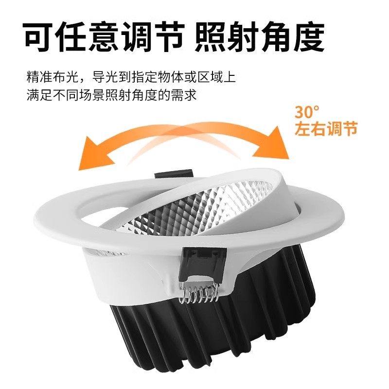 射灯LED天花灯小山丘嵌入式超亮家用COB筒灯7W可调商用聚光孔灯