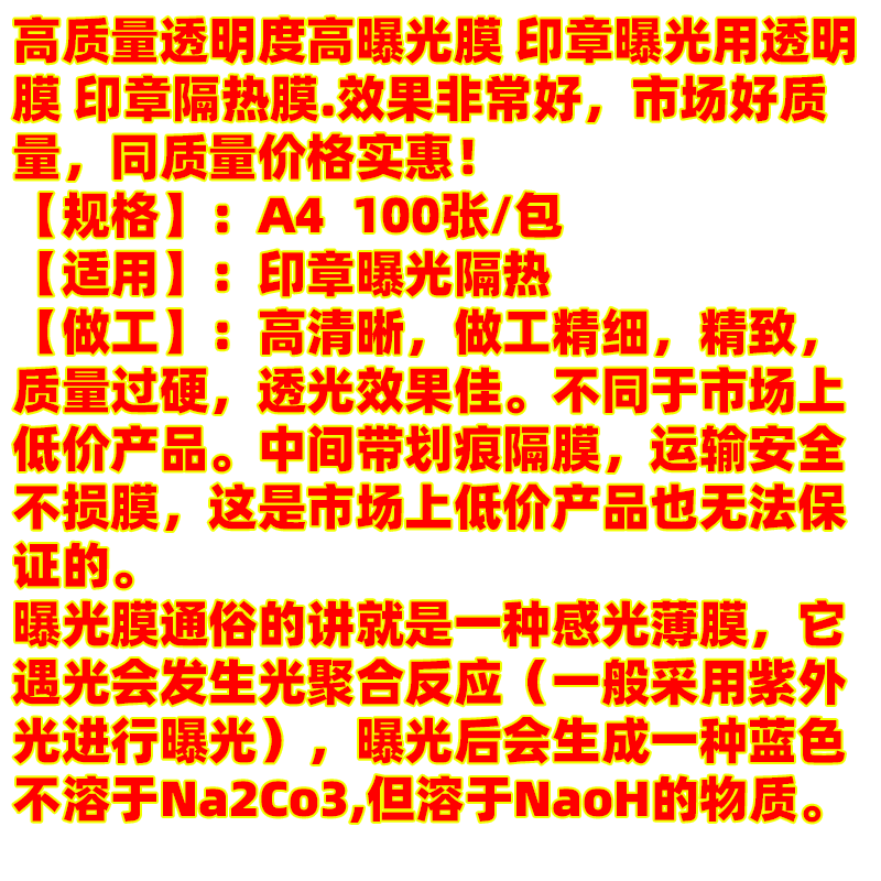 曝光膜加厚曝光胶片光敏印章材料刻章隔热膜光敏机耗材装订胶片