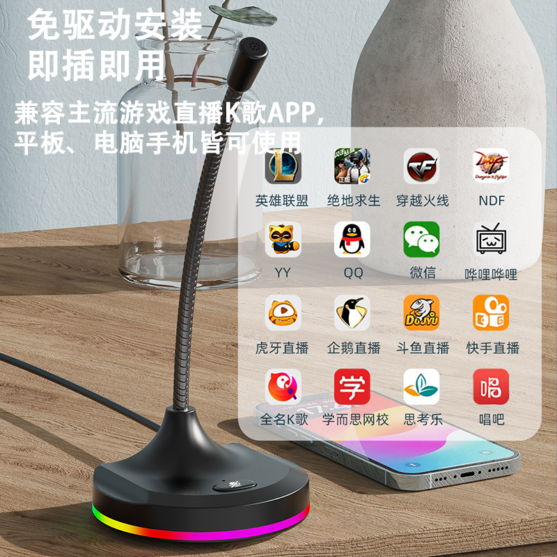 麦克风电脑台式话筒游戏语音笔记本USB降噪主播直播家用会议录音