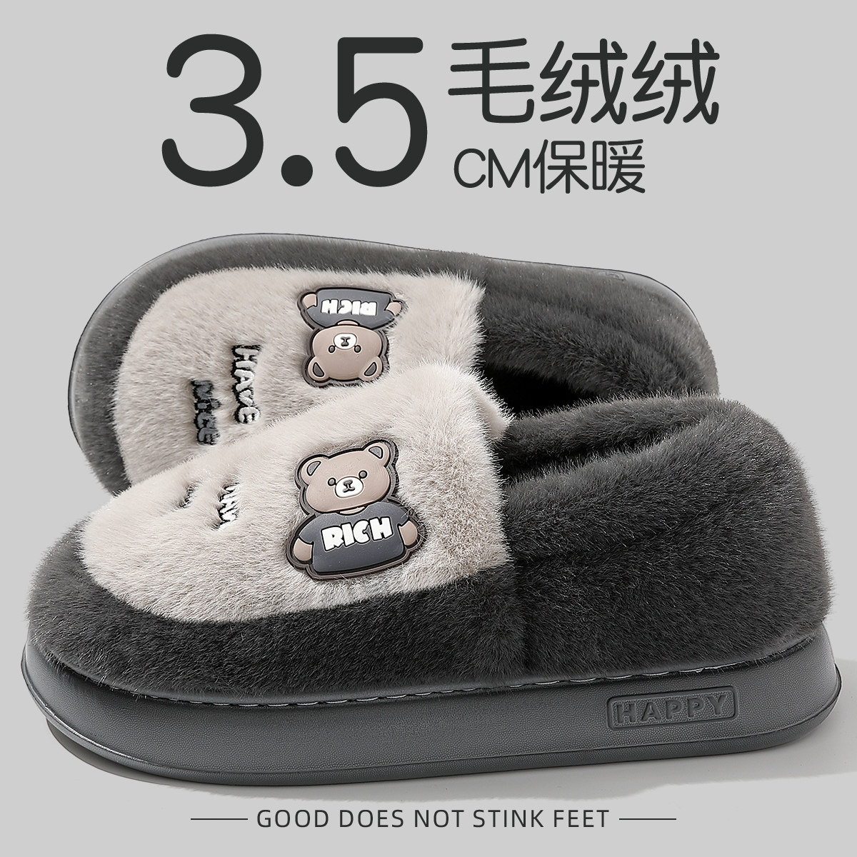 棉拖鞋男款冬季2025新款包跟毛绒保暖室内家居棉鞋冬天外穿居家棉