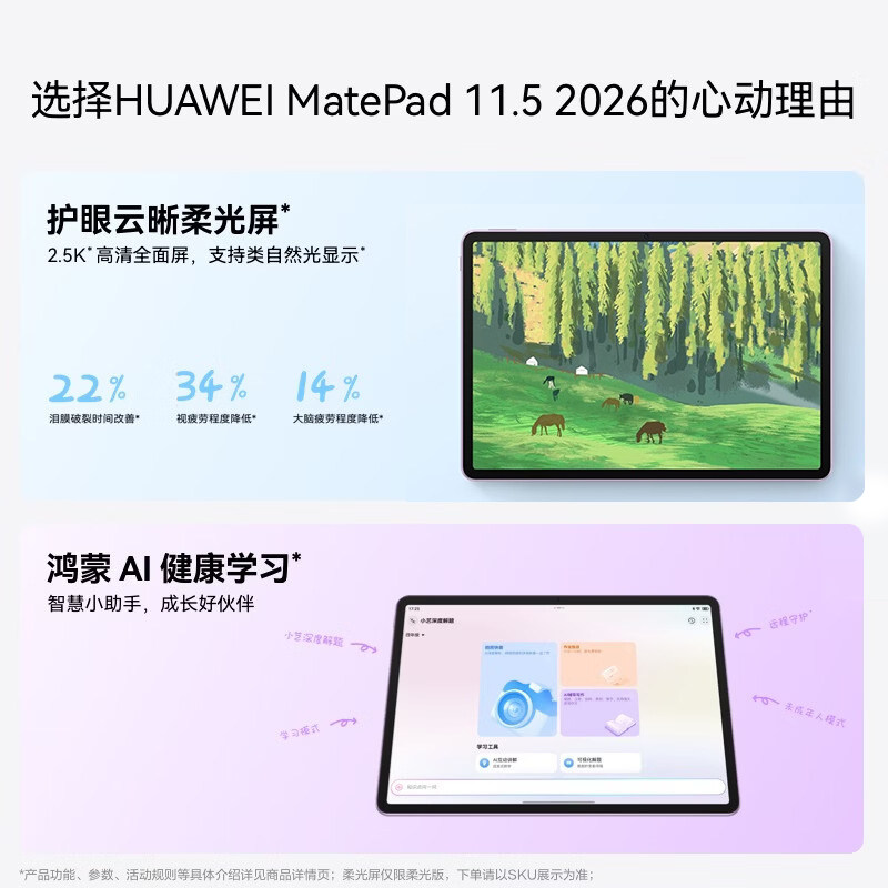 【新品首发】HUAWEI MatePad 11.5 2026华为平板电脑护眼屏鸿蒙AI大电池学生儿童绘画笔记学习机新款官方旗舰