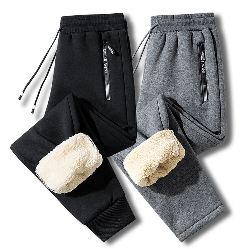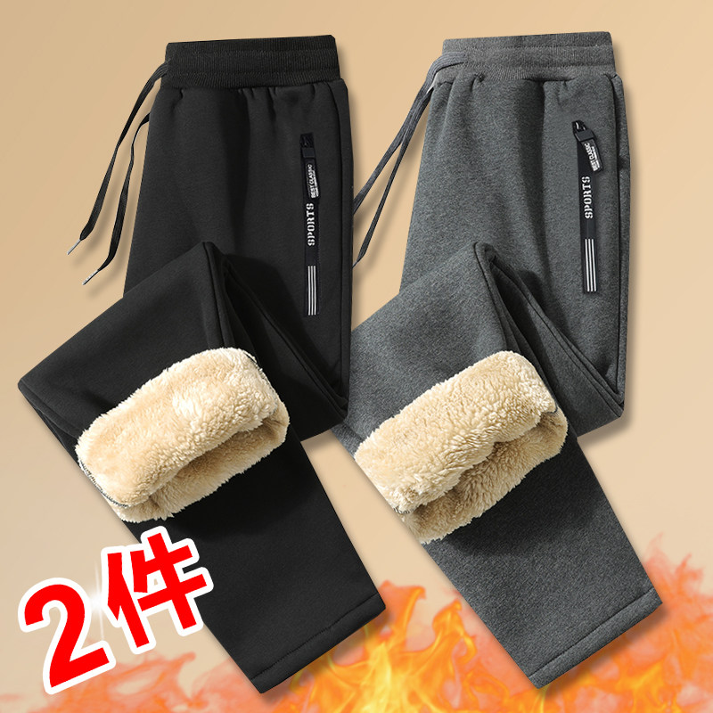冬季加绒加厚裤子男士休闲运动长裤大码束脚裤冬天保暖羊羔绒棉裤