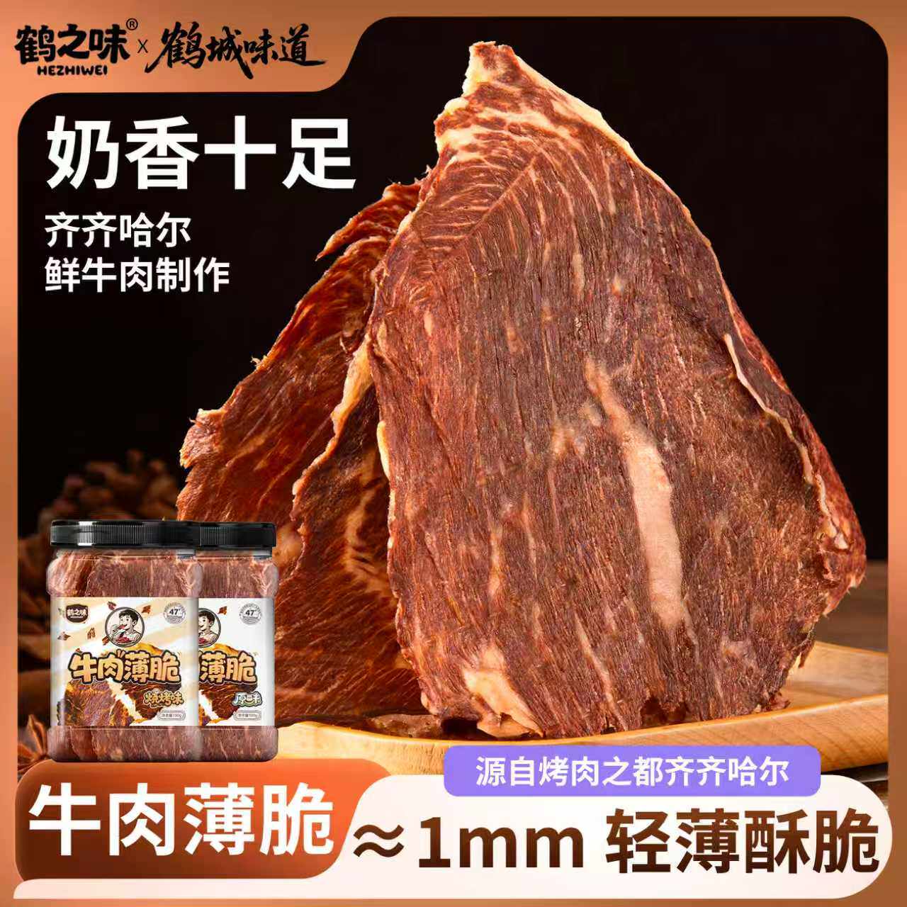 齐齐哈尔原切谷饲牛排脆牛肉薄脆零食高蛋白解馋风干酥脆即食罐装