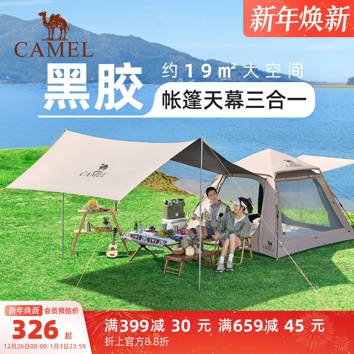 骆驼牧云Pro便携折叠天幕帐篷二合一户外便携式折叠露营野营过夜
