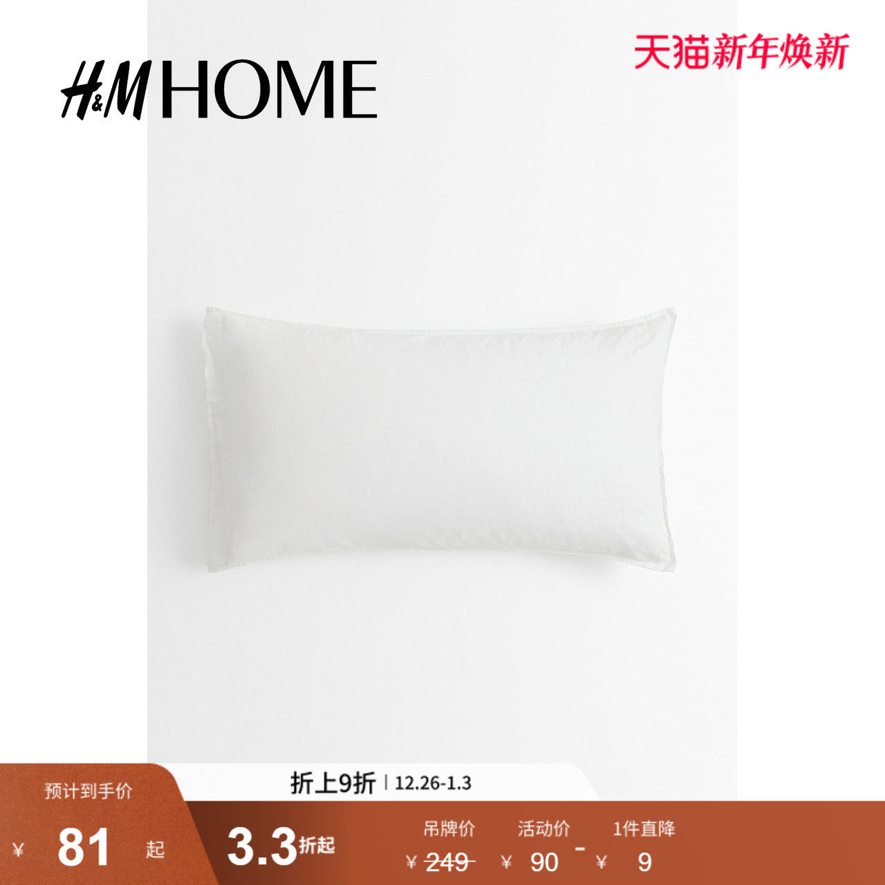 HM冬季家居床上用品枕套柔软水洗亚麻长方形枕套0184136