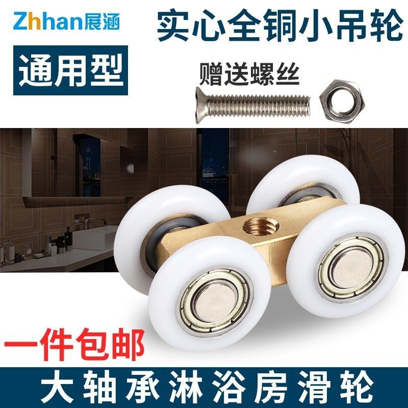 全铜淋浴房吊滑轮浴室玻璃移门防水轴承吊轮卫生间推拉门小铜四轮
