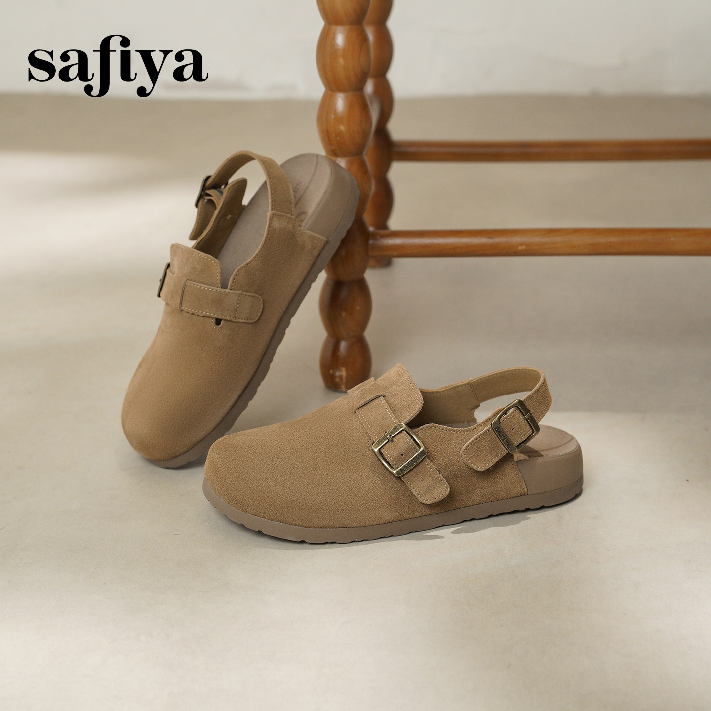 索菲娅2026春季新品复古一脚蹬厚底百搭外穿懒人包头软底勃肯鞋