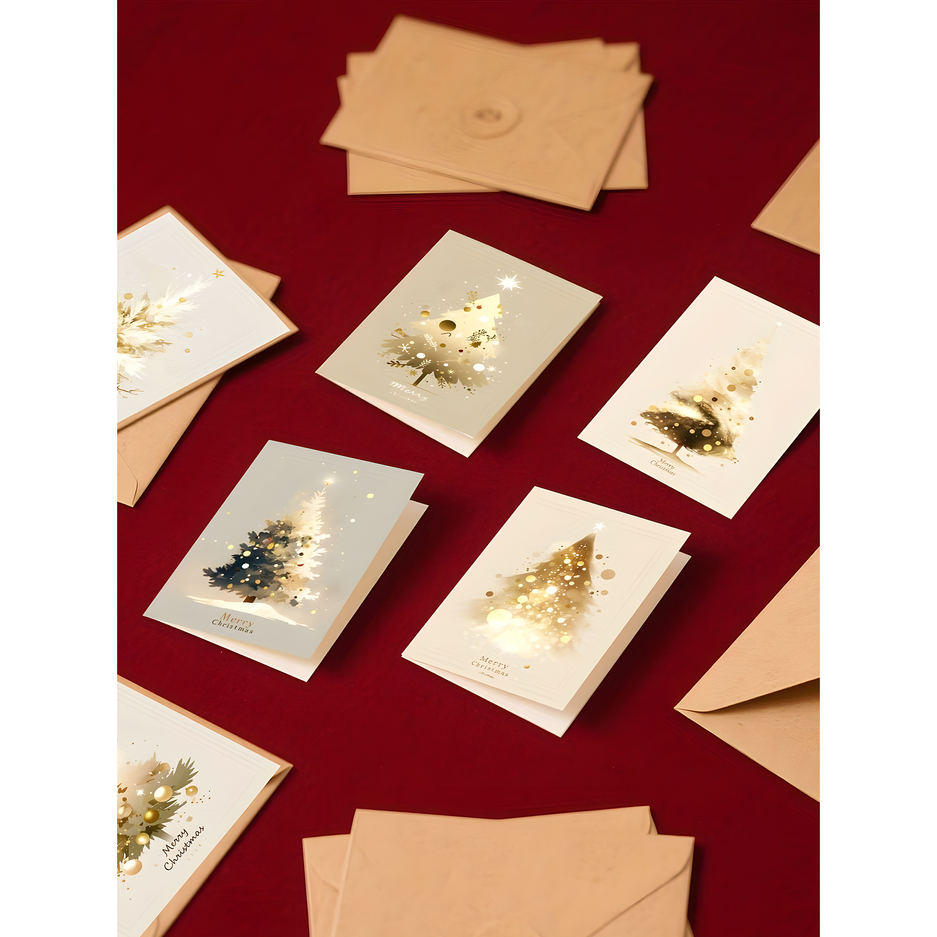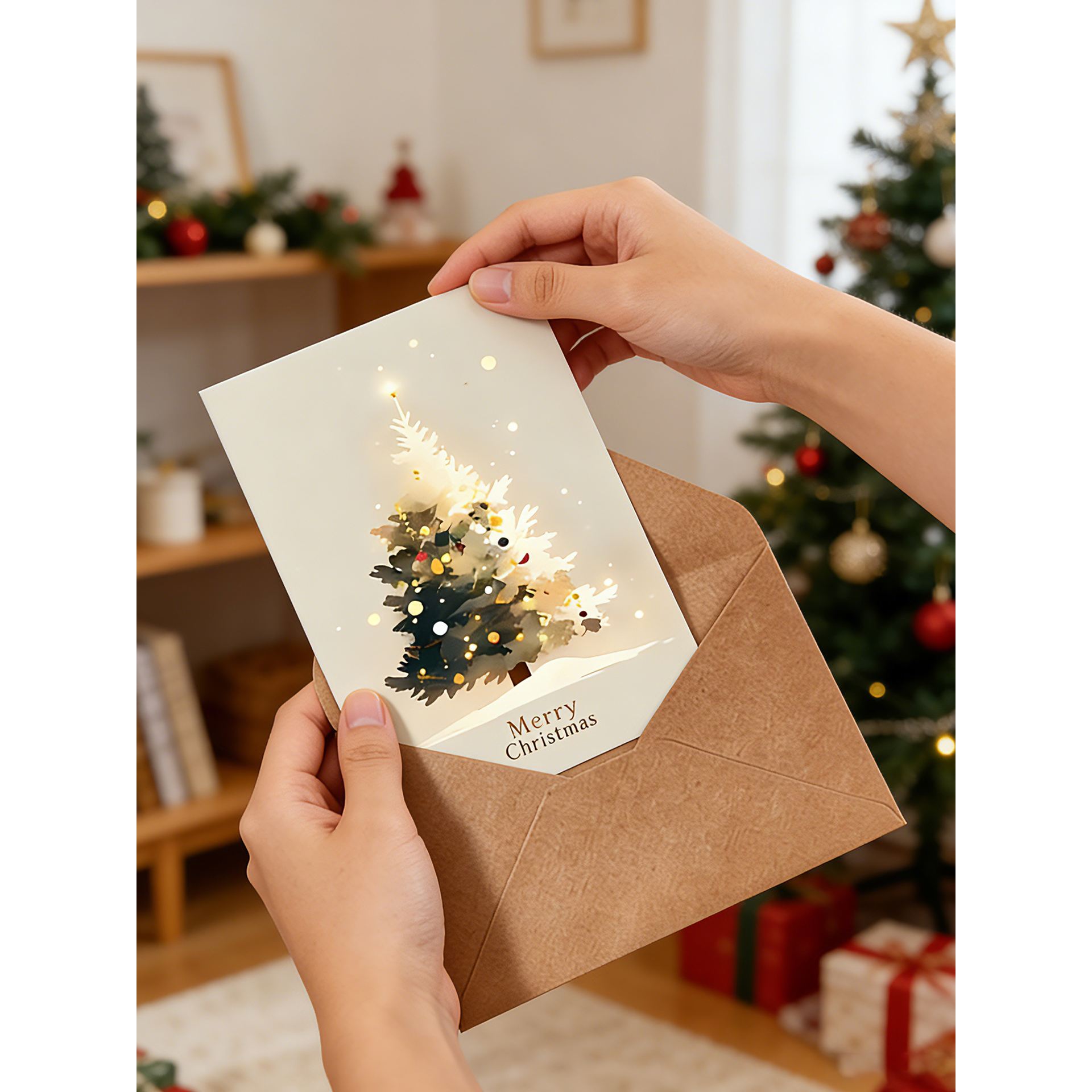 新款圣诞贺卡创意木雕烫金圣诞树卡片送男女朋友小惊喜圣诞节小礼物点燃温感生日温度祝福感谢立体卡片高颜值
