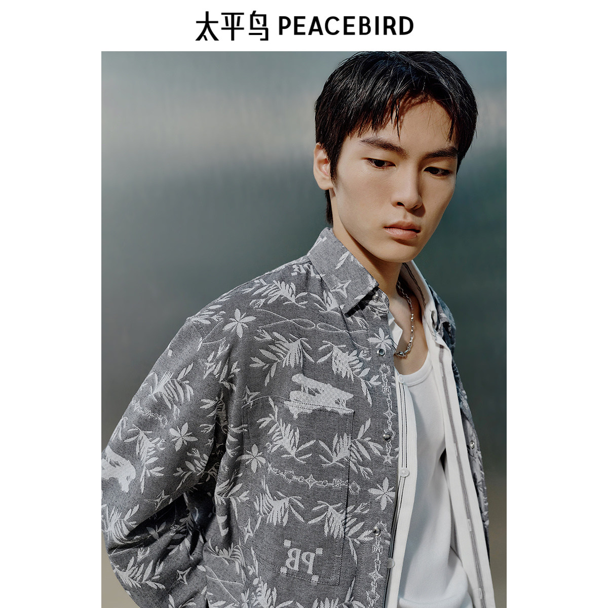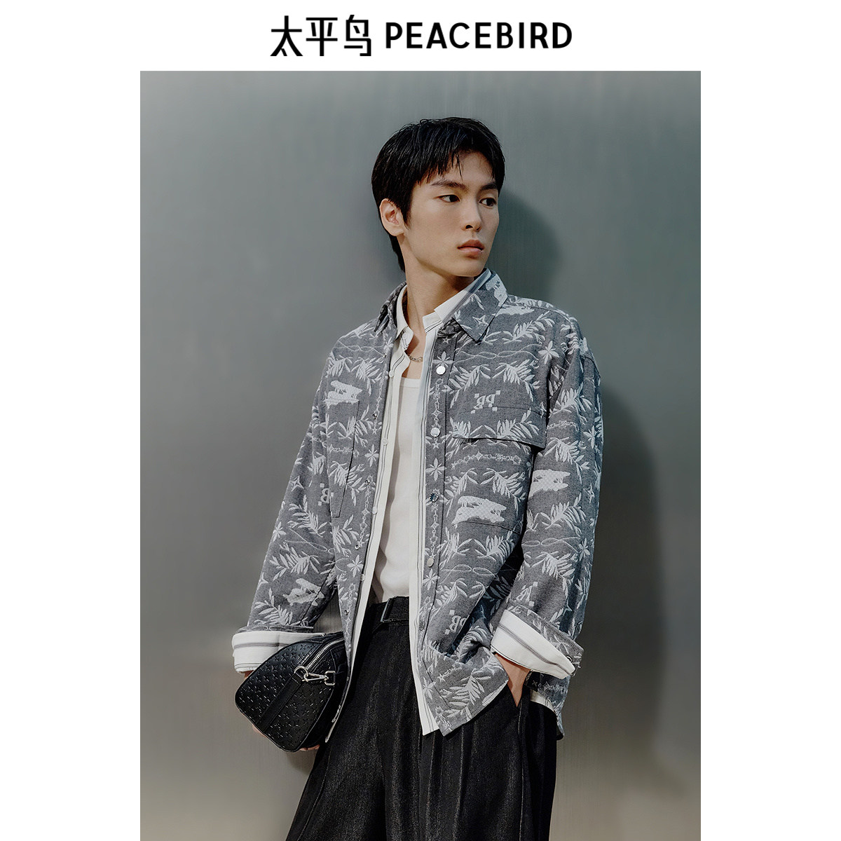 太平鸟男装 休闲衬衫男士时尚外穿式衬衫潮流休闲新中式长袖衬衫
