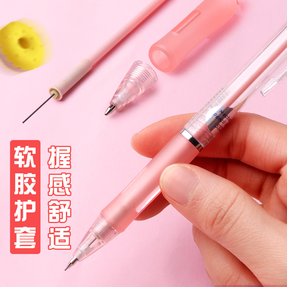 得力文具自动铅笔0.5mm中小学生可爱小清新卡通不易断铅0.7mm儿童2B考试自动铅芯套装HB糖果色少女心活动铅笔
