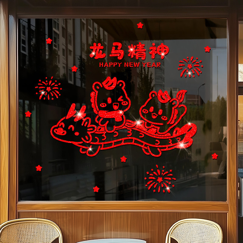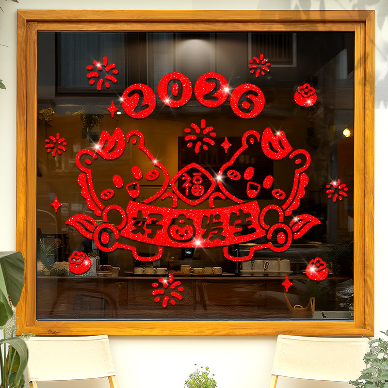 2026新年窗花马年装饰新款玻璃门贴纸静电橱窗贴春节氛围布置贴画