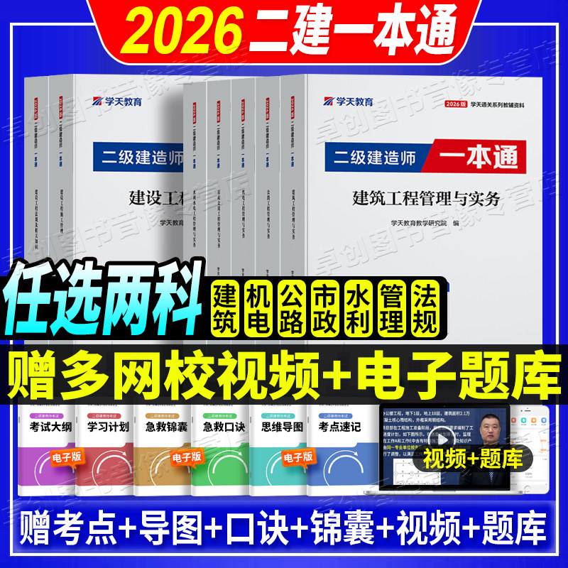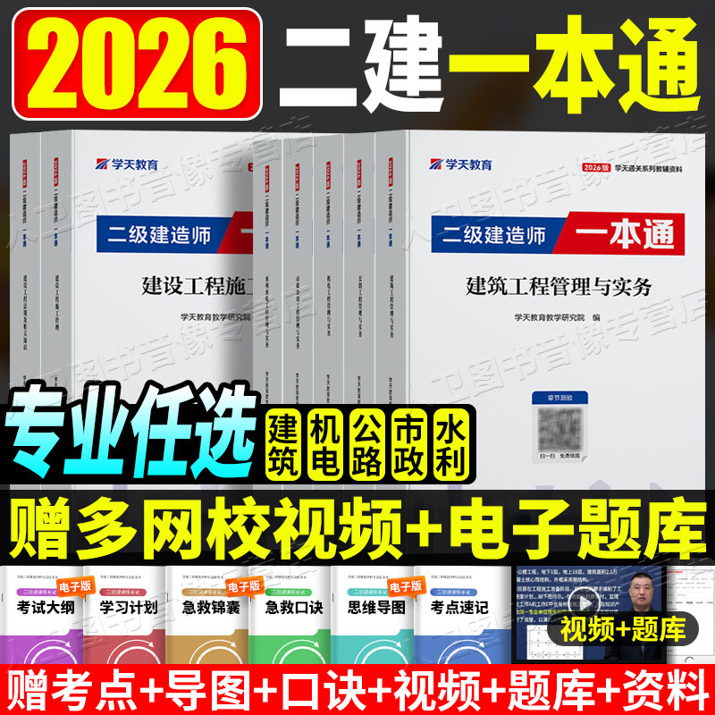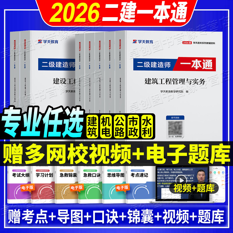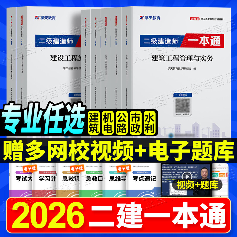 2026学天教育二建一本通教材讲义图文并茂高频考点视频题库建筑市政机电公路水利实务历年真题试卷必刷题章节复习习题集建造师考试