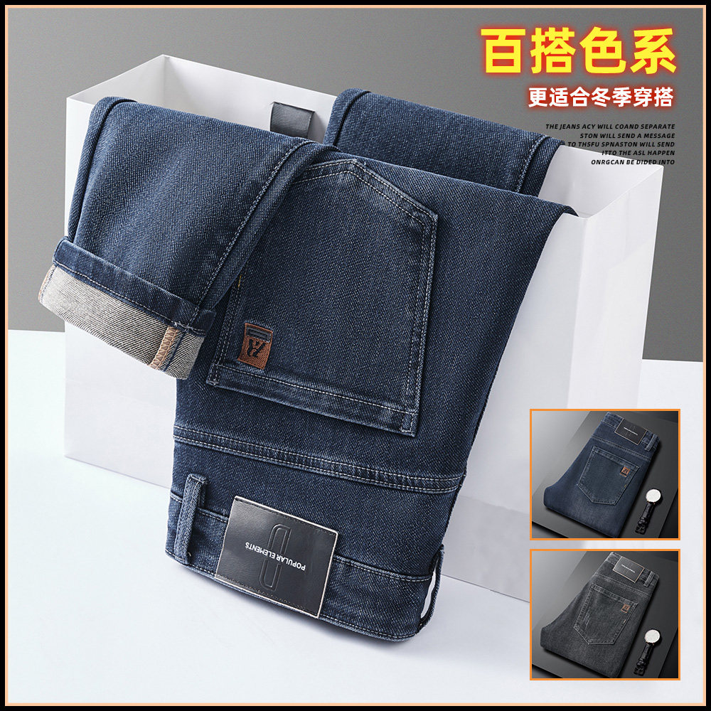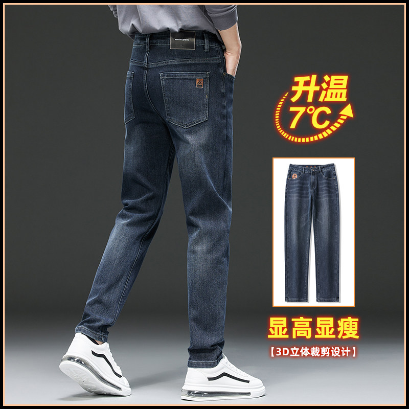 撤标撤柜(B)加绒加厚保暖水貂绒牛仔裤秋冬修身直筒男士休闲长裤