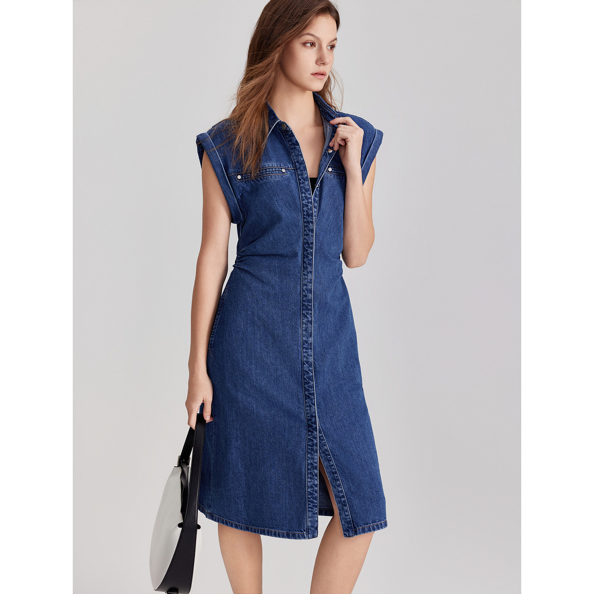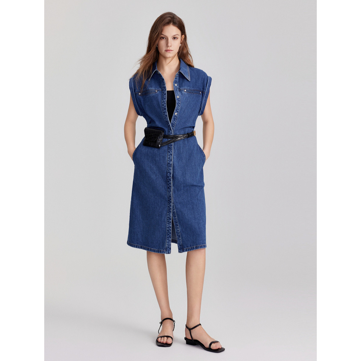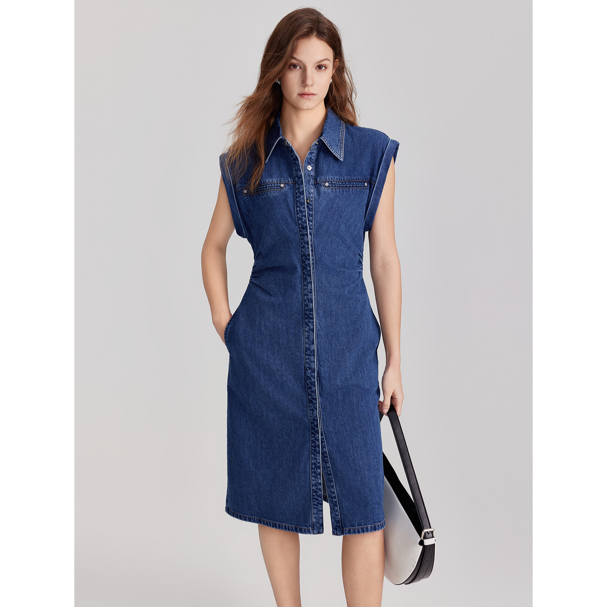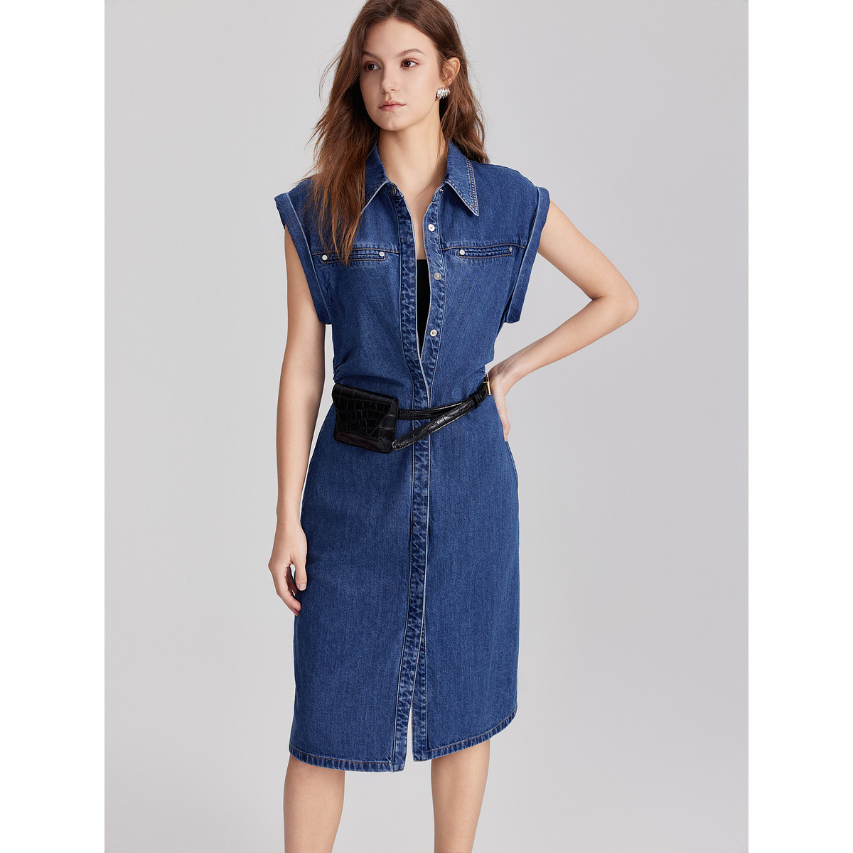 ELLE设计感时尚复古牛仔连衣裙女2025夏季新款高端精致纯棉裙子