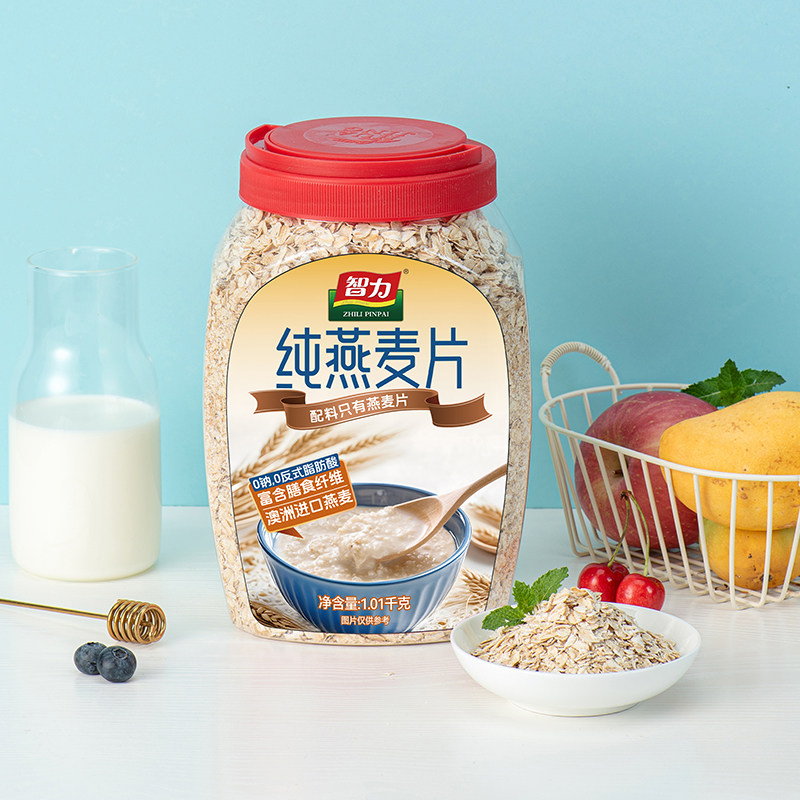 智力纯燕麦片原味无蔗糖高纤易冲泡免煮即食营养早餐谷物桶装代餐