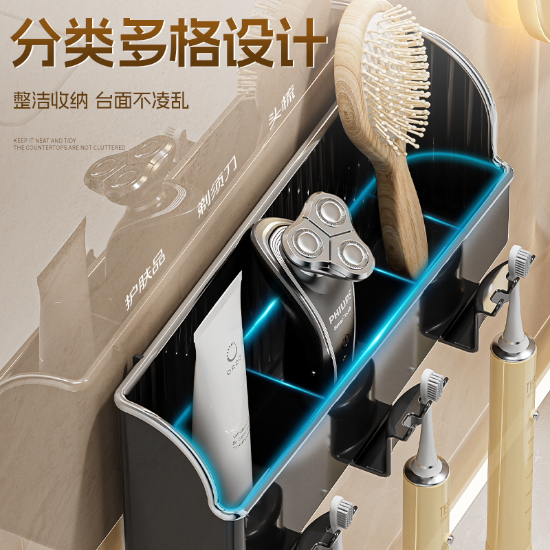 卫生间牙刷置物架电动吹风机支架家庭洗漱台壁挂式漱口杯牙具架子