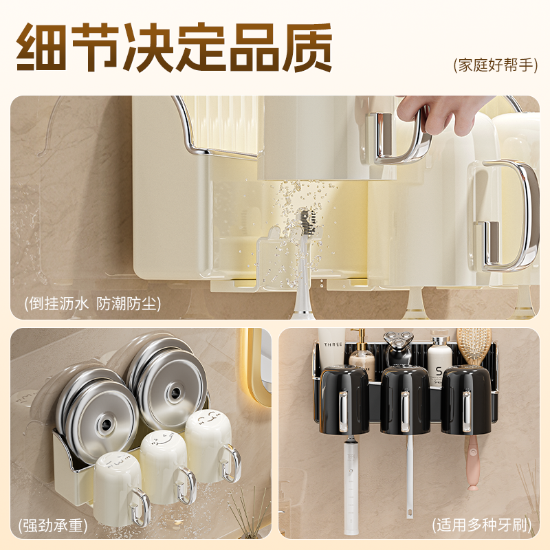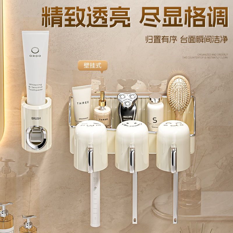牙刷置物架免打孔漱口杯刷牙杯卫生间壁挂式家庭电动挤牙膏器杯子