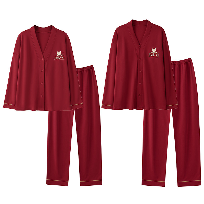秋冬可爱大红色睡衣情侣男女士开衫长袖睡衣本命年结婚新婚家居服