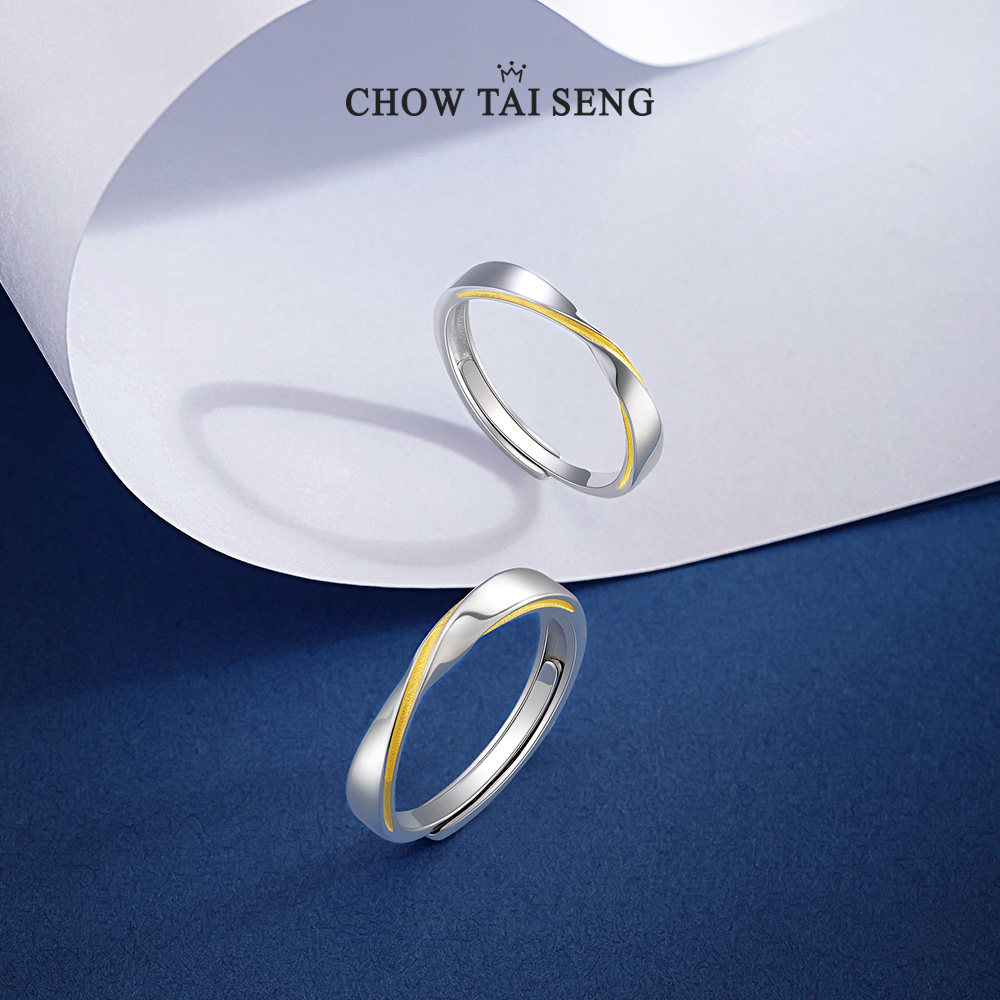 周大生莫比乌斯环情侣对戒纯银S925活口食指戒高级生日礼物送女友