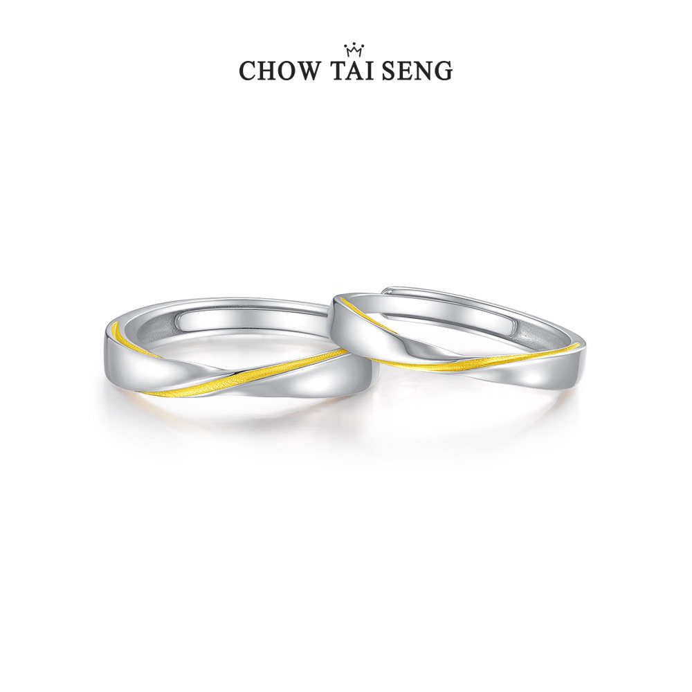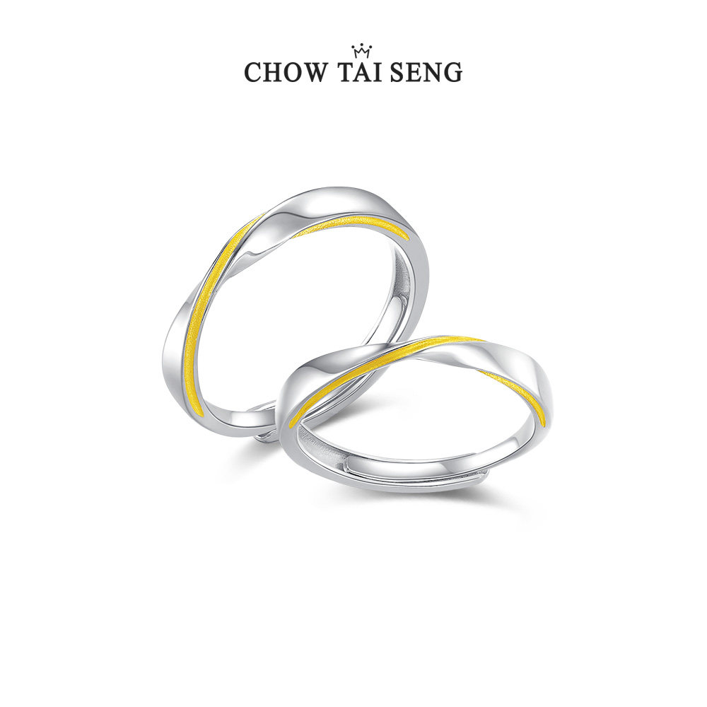 周大生纯银莫比乌斯情侣对戒可调节大小时尚戒指圣诞礼物送女友