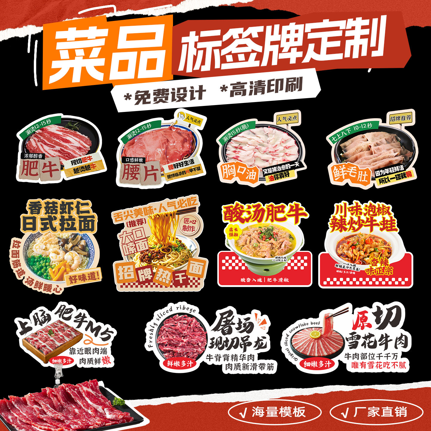 菜品标签牌定制logo烧烤火锅店串串产品介绍说明卡展示牌活动价格美食自助餐饮铜版纸pvc小卡片防水订制印刷