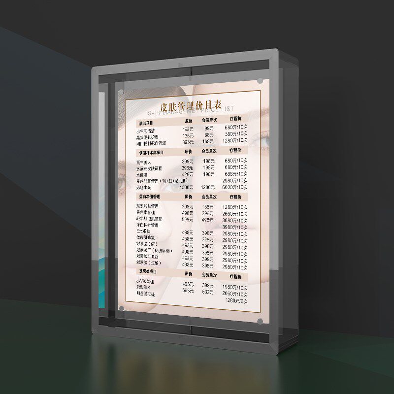 美容院皮肤管理价格表设计亚克力旋转美甲台牌美发价目表轻奢摆台