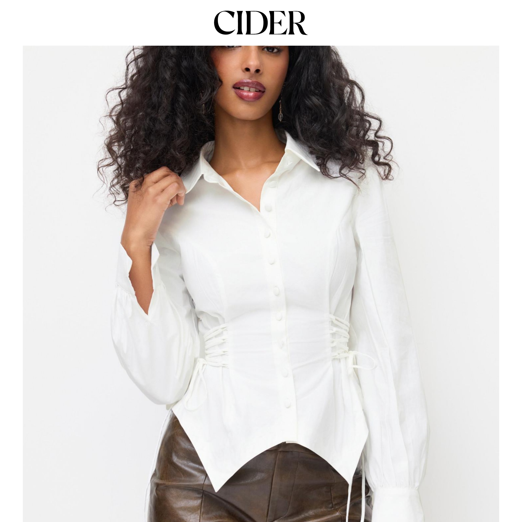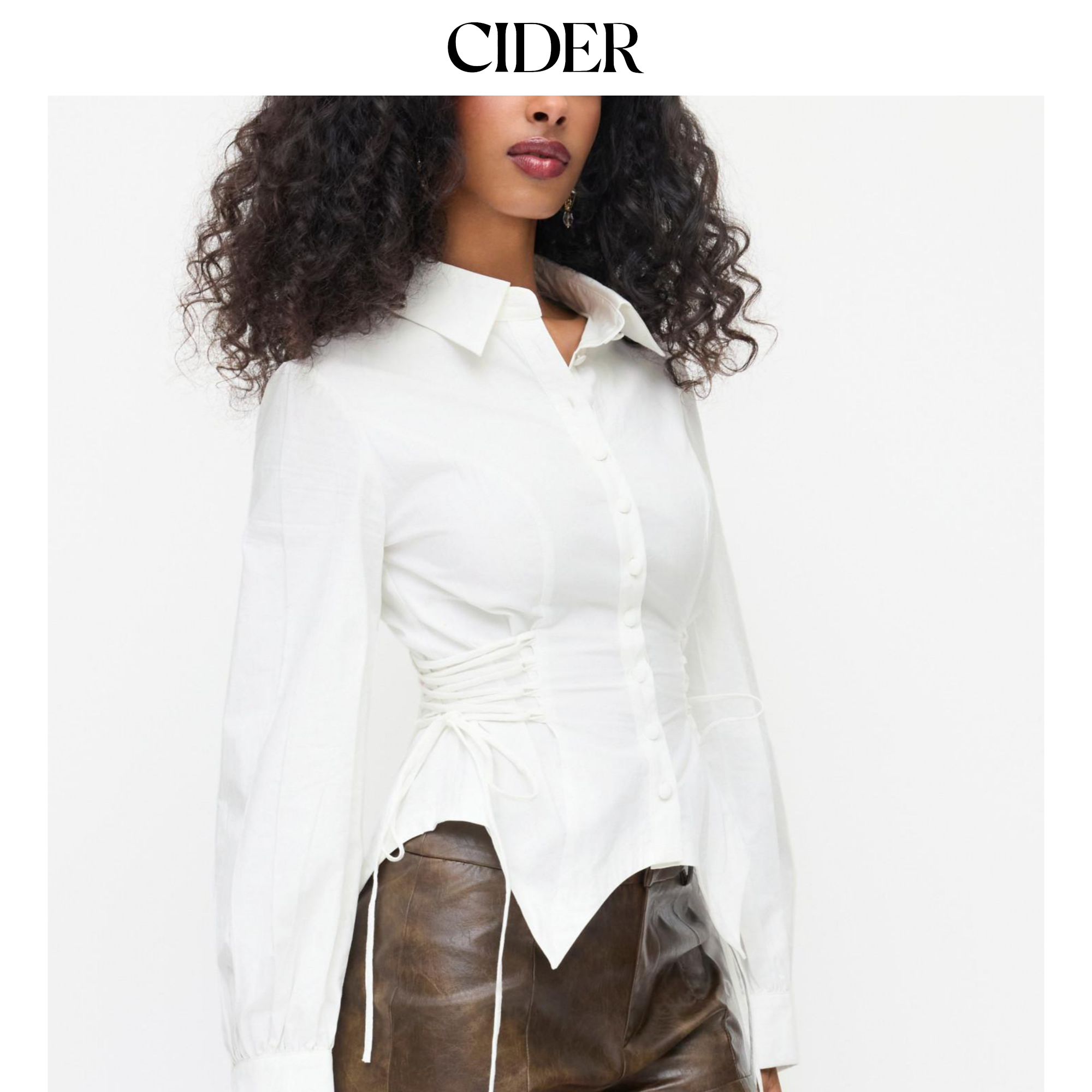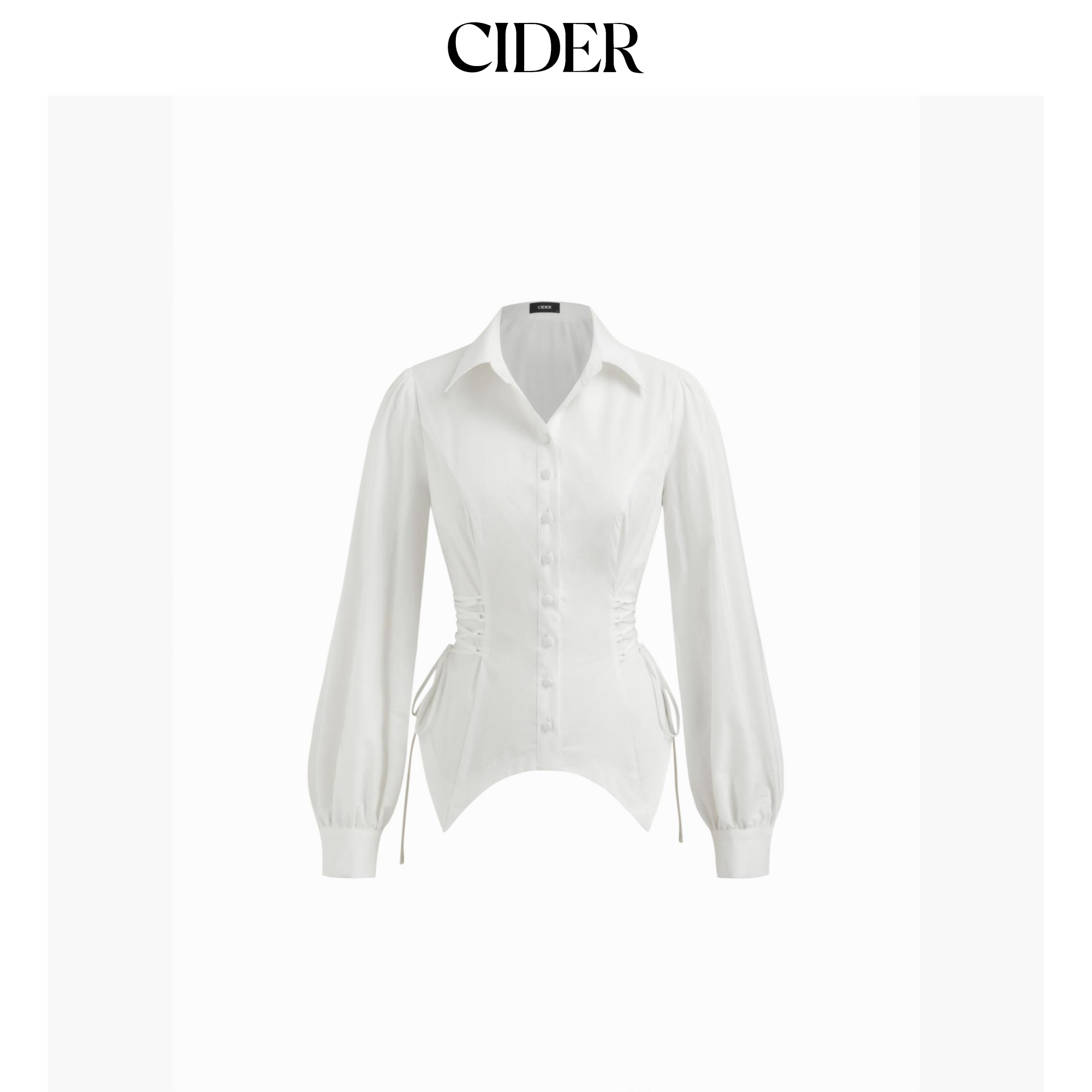 CIDER 春秋新品女装棉翻领长袖系带收腰上衣114887980