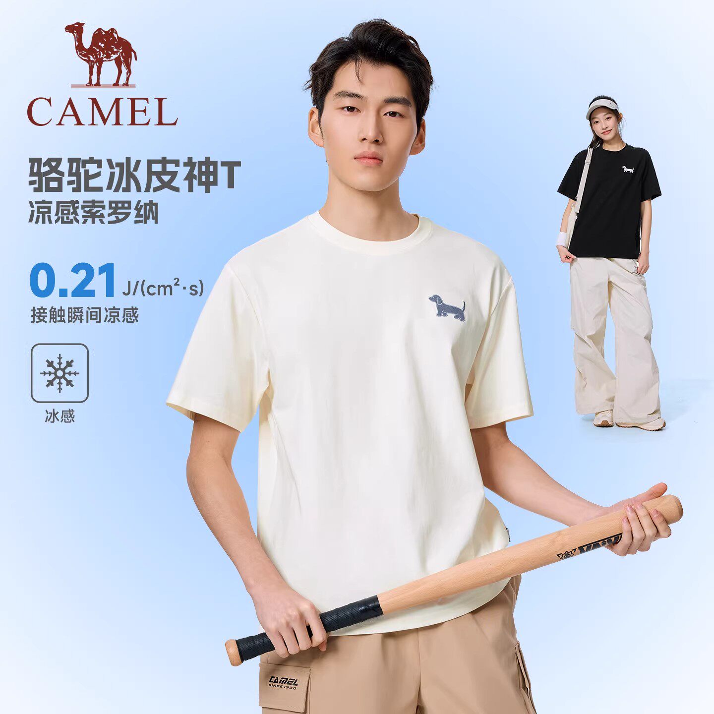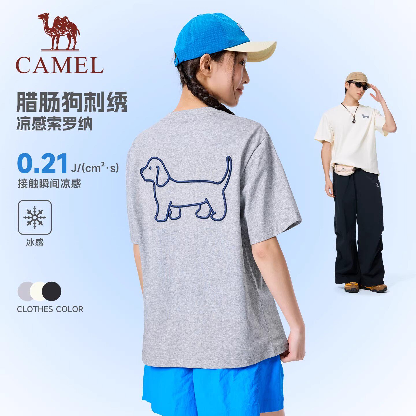 骆驼运动休闲t恤男女同款2026夏季新款圆领短袖冰感宽松情侣装