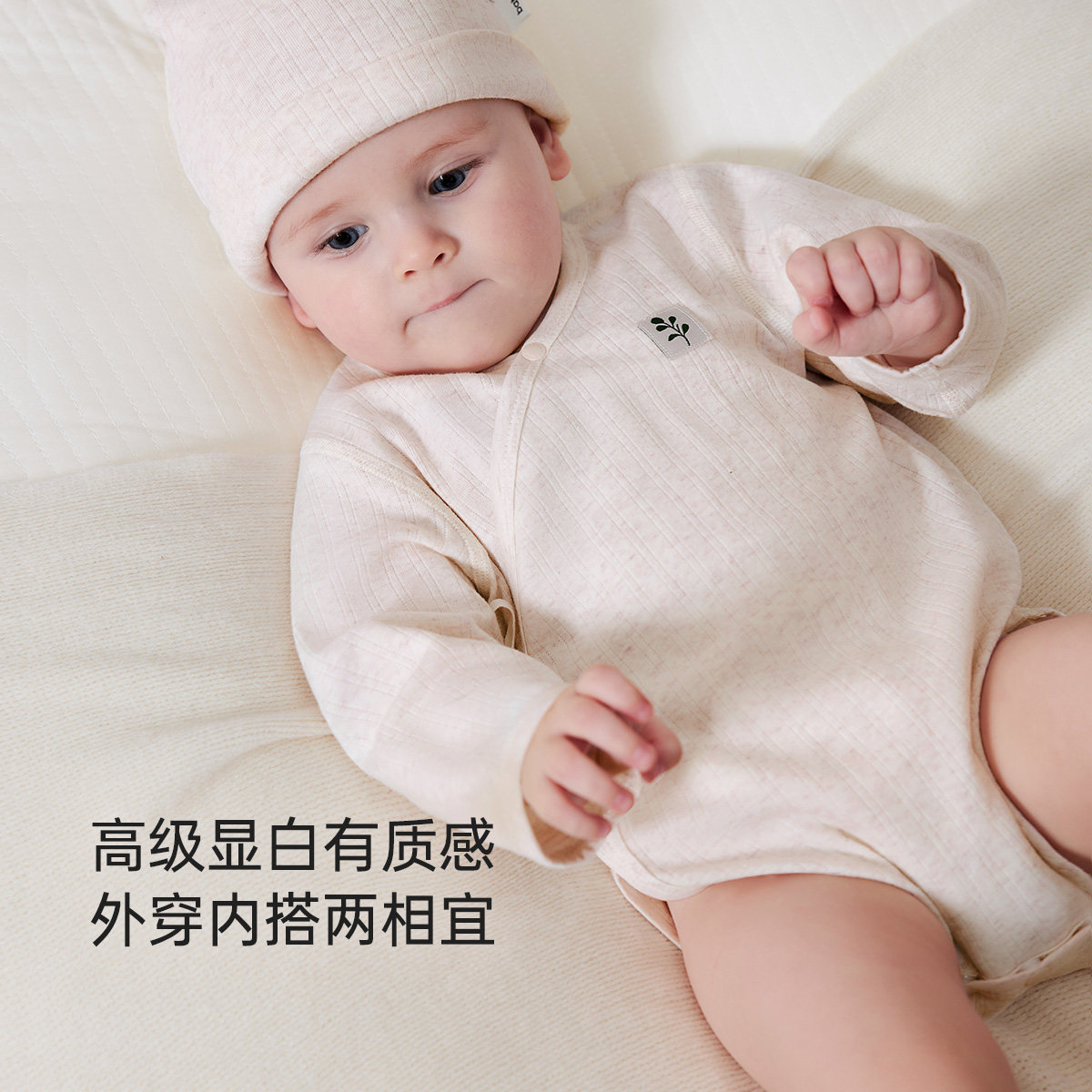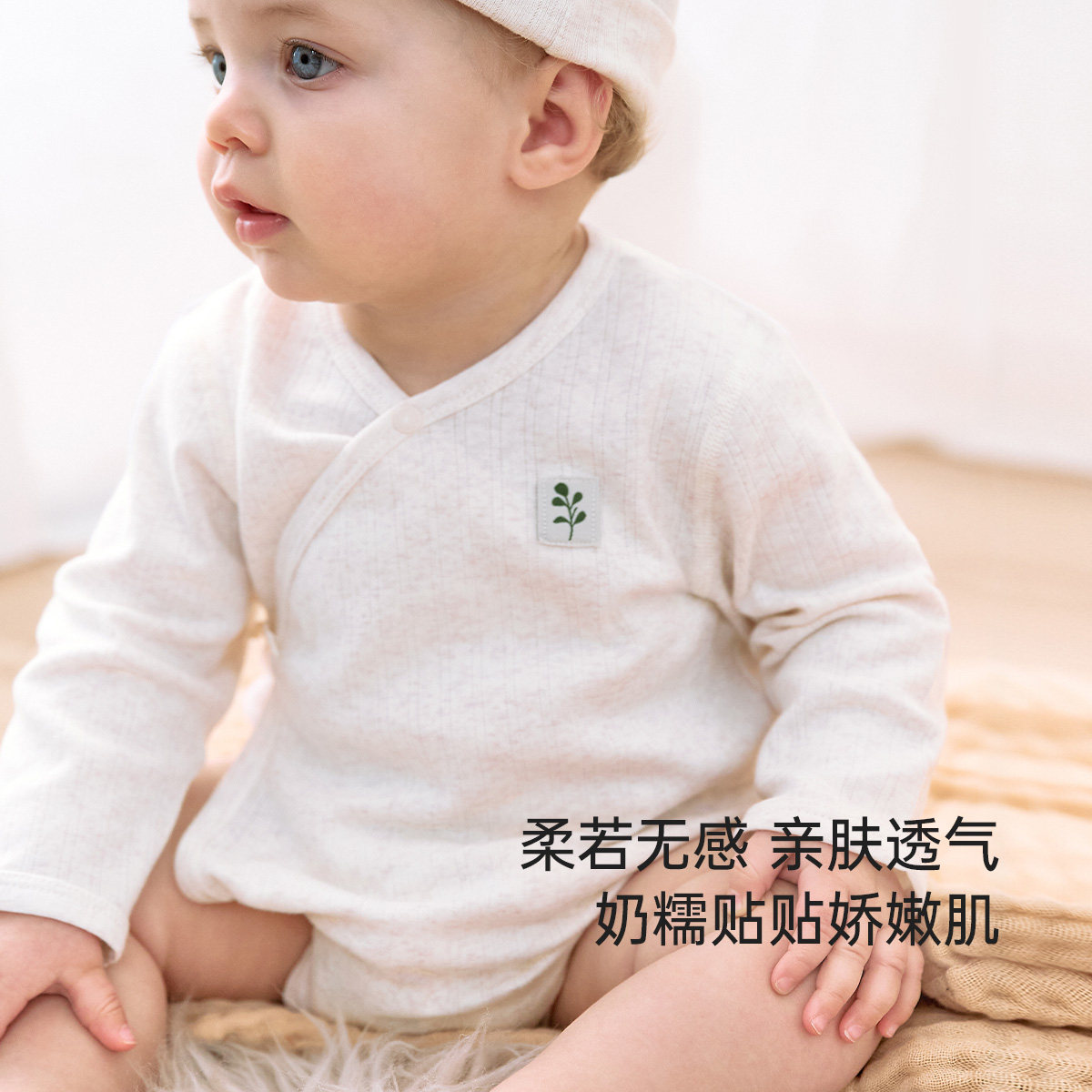 babylove婴儿包屁衣春秋新生儿三角哈衣爬服护肚和尚服睡衣云烟绒