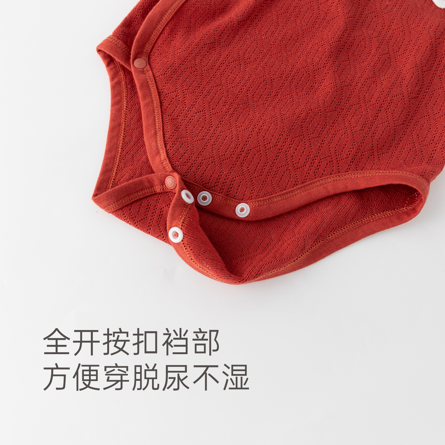 新生儿红色喜庆三角哈衣春夏宝宝纯棉连体衣婴儿包屁衣过新年服