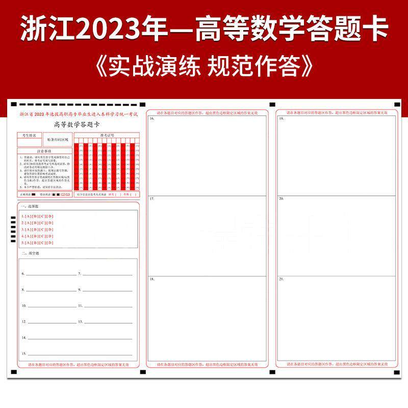 2023年浙江省高职高专毕业生进入本科学习统一考试高等数学模拟答题卡A3双面媲美考试纸张 支持定制