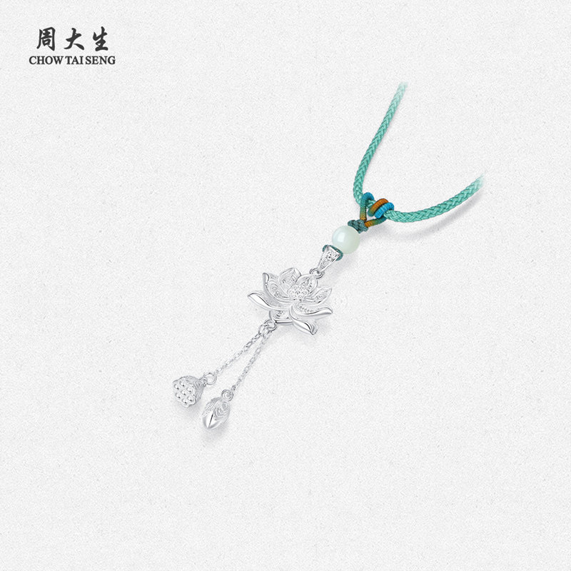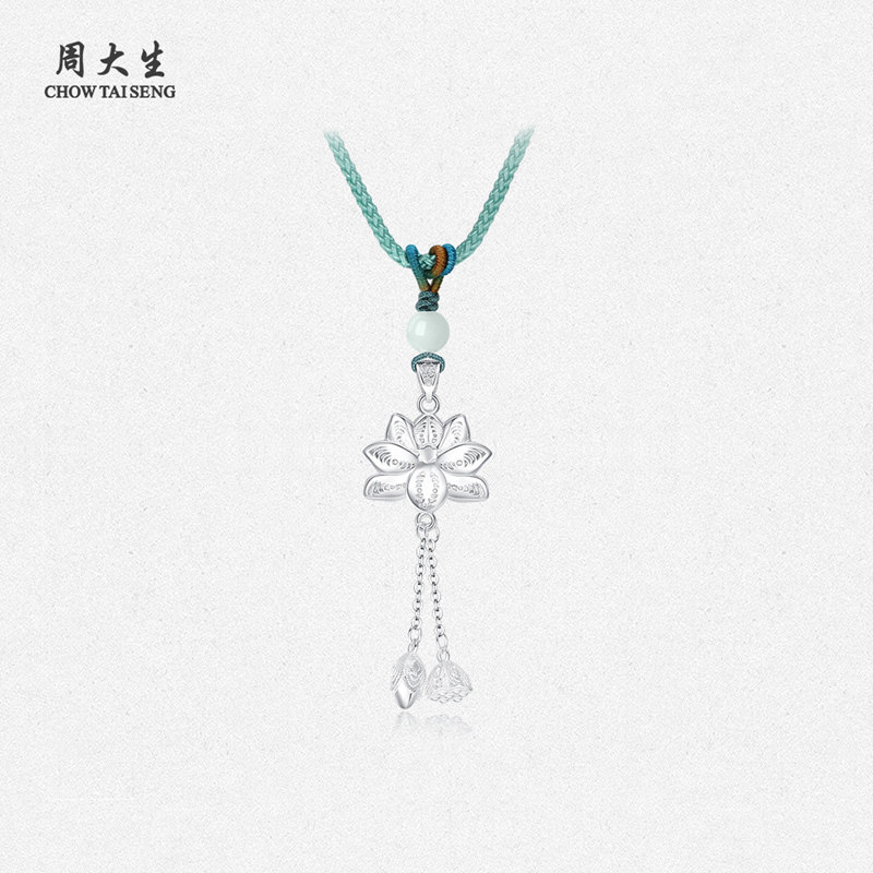 周大生S990足银莲花项链新款水出芙蓉和田玉带编绳套链礼物送女友