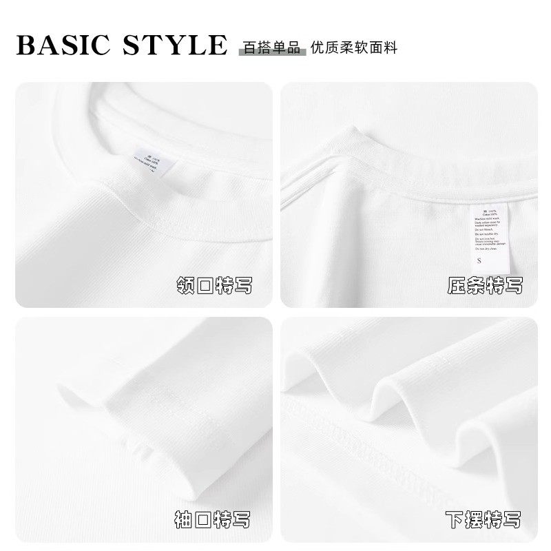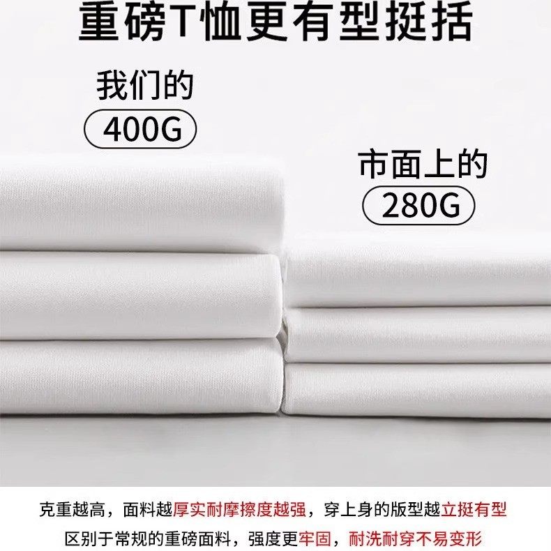 新疆棉400g重磅纯棉短袖t恤男女情侣半袖夏季白色圆领宽松打底衫