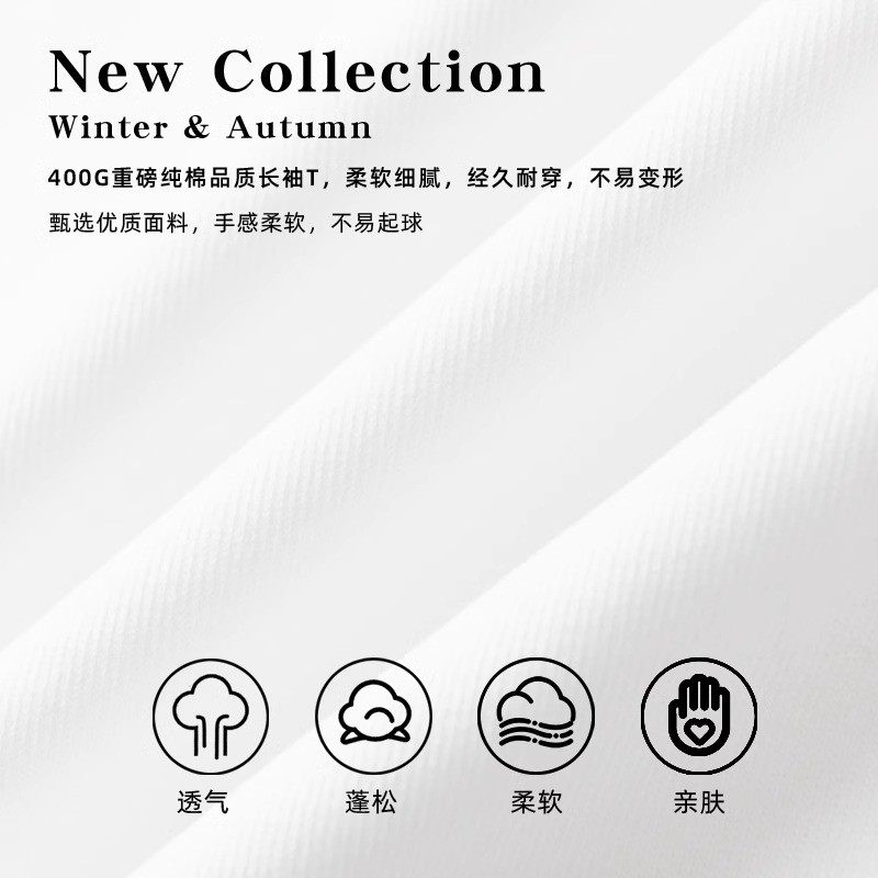 新疆棉400g重磅纯棉长袖t恤秋冬宽松纯白色打底衫内搭加厚男女款