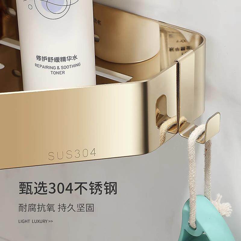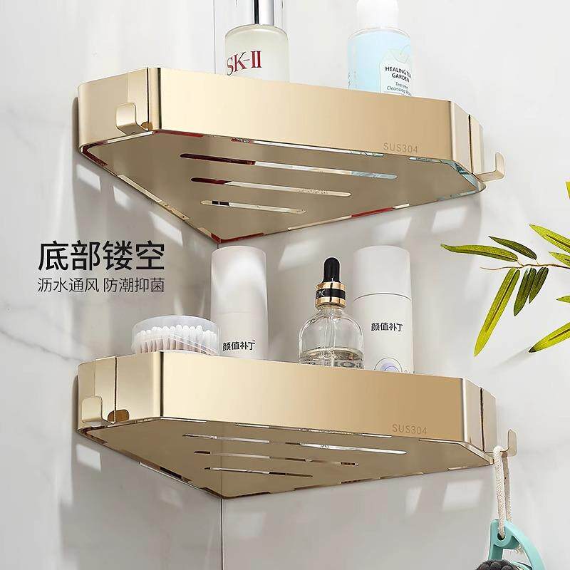 浴室置物架免打孔304不锈钢淋浴房卫生间壁挂式轻奢金收纳三角架