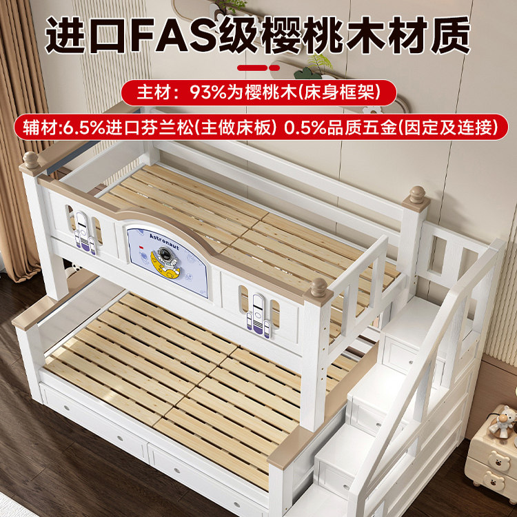 源氏木语儿童床实木上下床北欧橡木子母床成人上下铺高低床