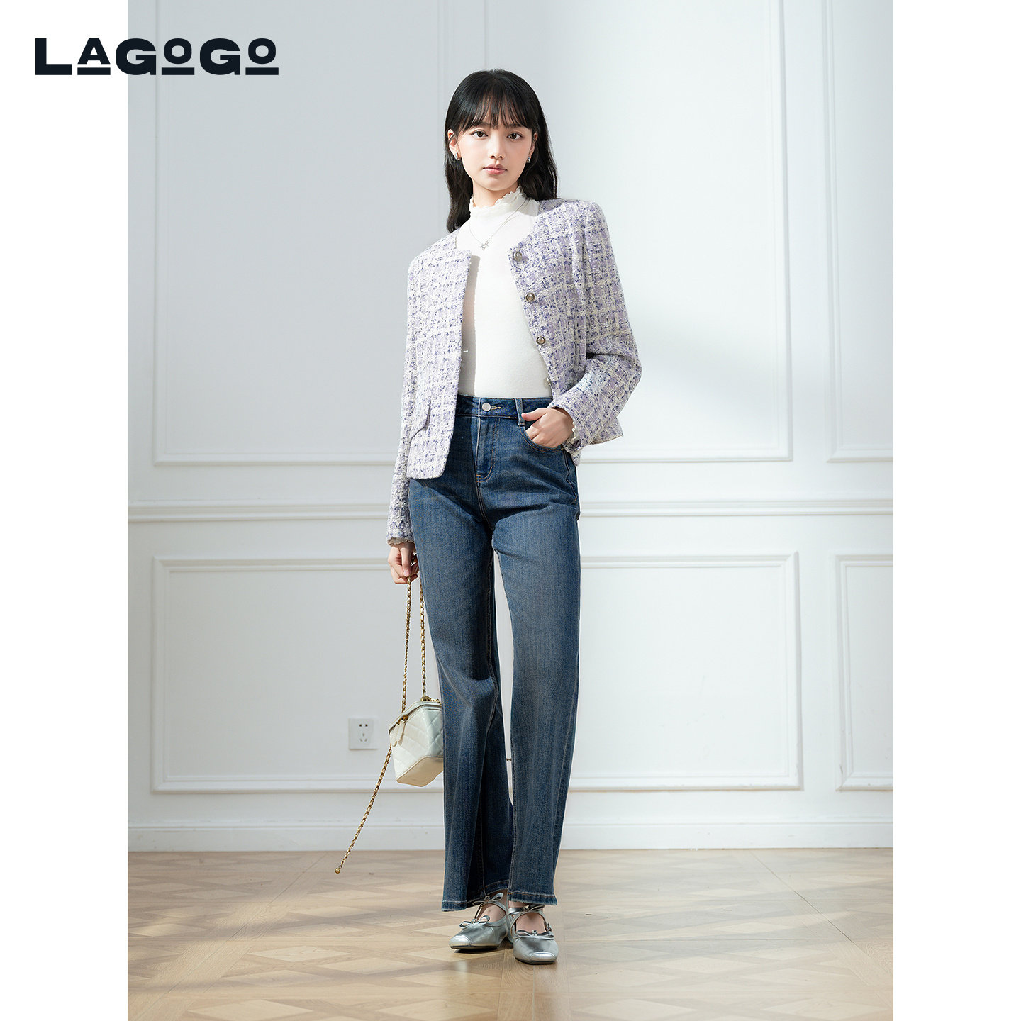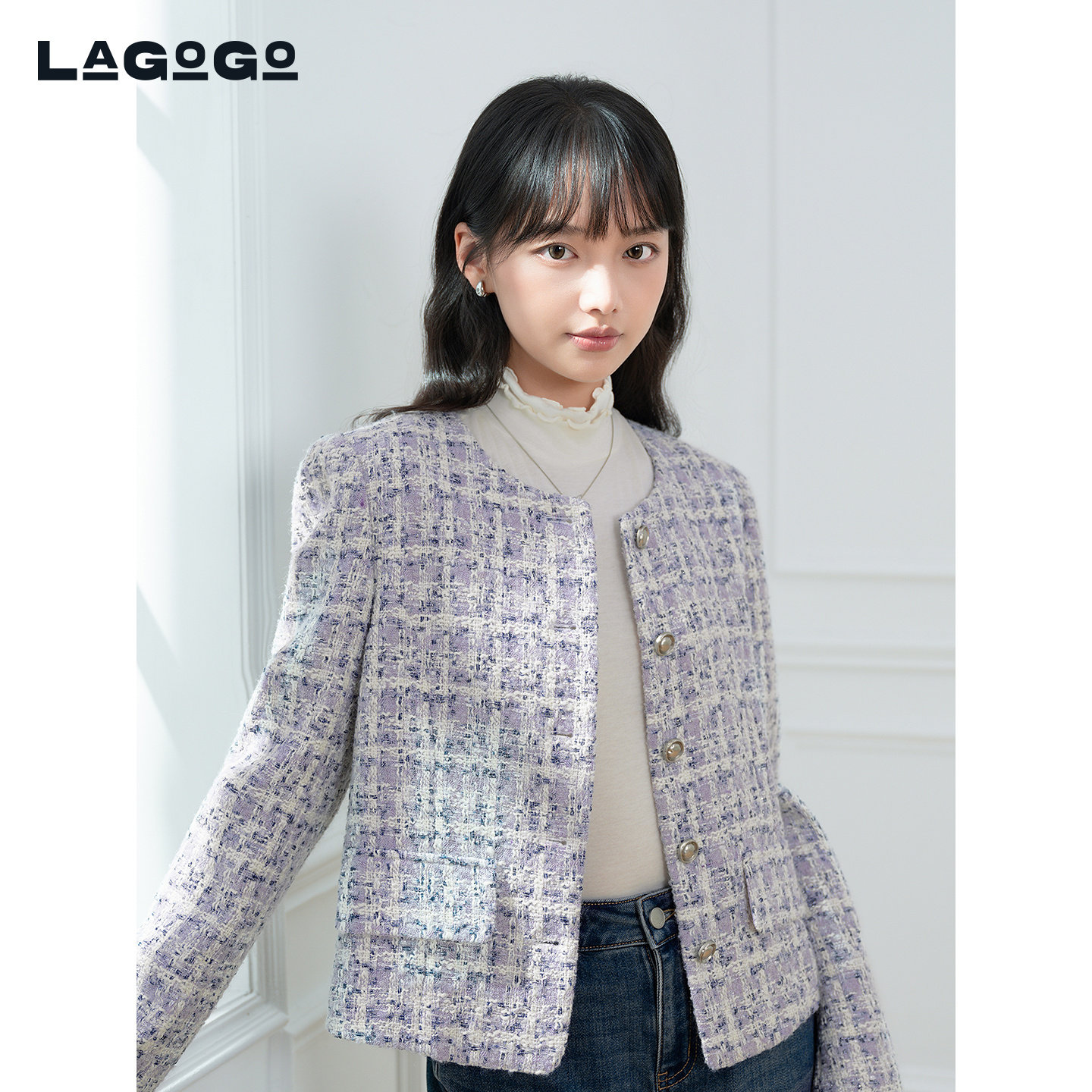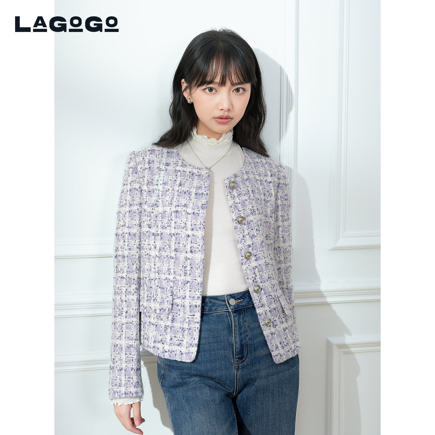 LAGOGO小香风短外套女拉谷谷2025年新款气质亮丝上衣OCWW549K34