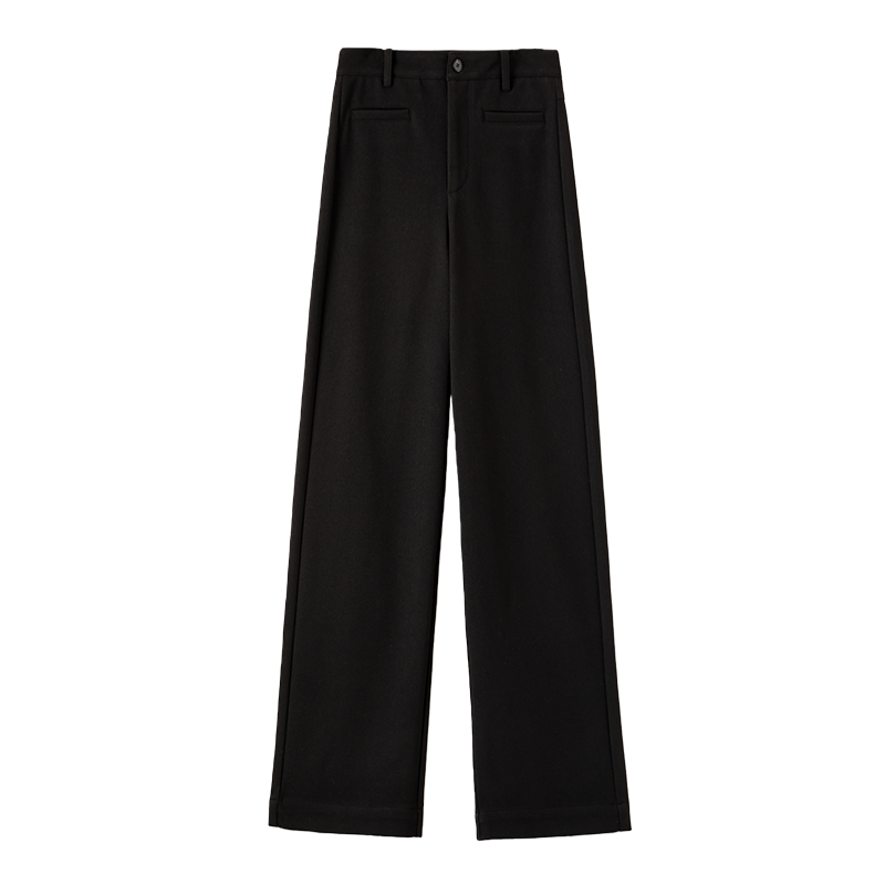 高腰版型,加厚毛呢,微弹,阔腿裤口