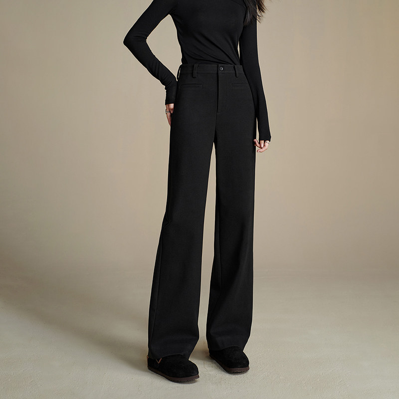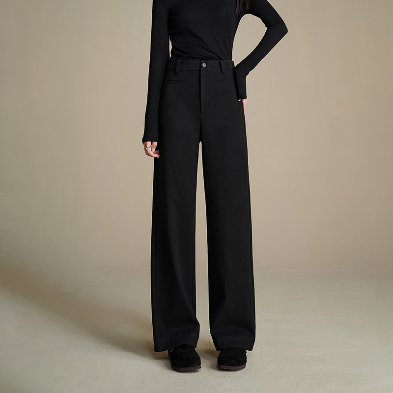 晚白秋冬气质直筒裤子高腰厚毛呢舒适休闲裤女2025年新款时尚潮流