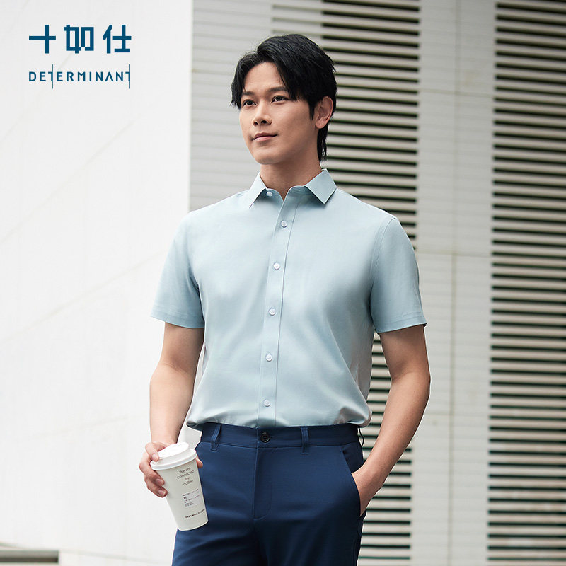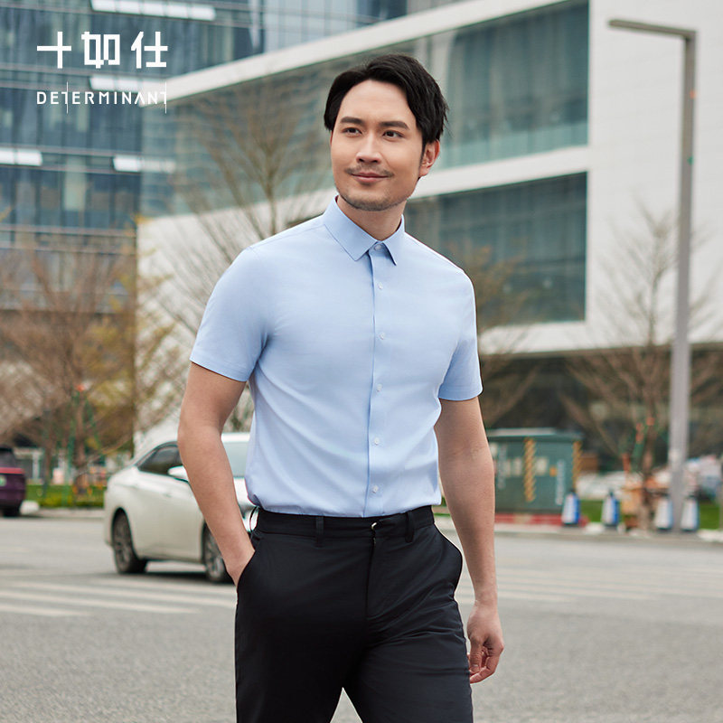 【限量款】十如仕小方领弹力斜纹短袖衬衫免烫抗菌商务上衣303