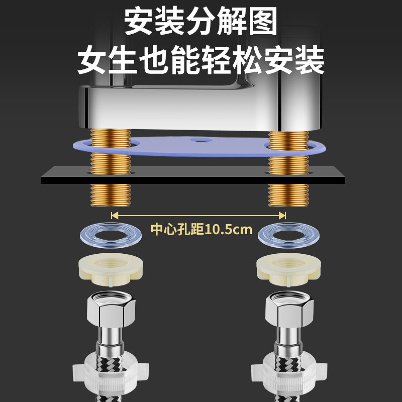 卫生间洗脸盆双孔水龙头冷热水二合一浴室洗手池洗漱台铜面盆龙头