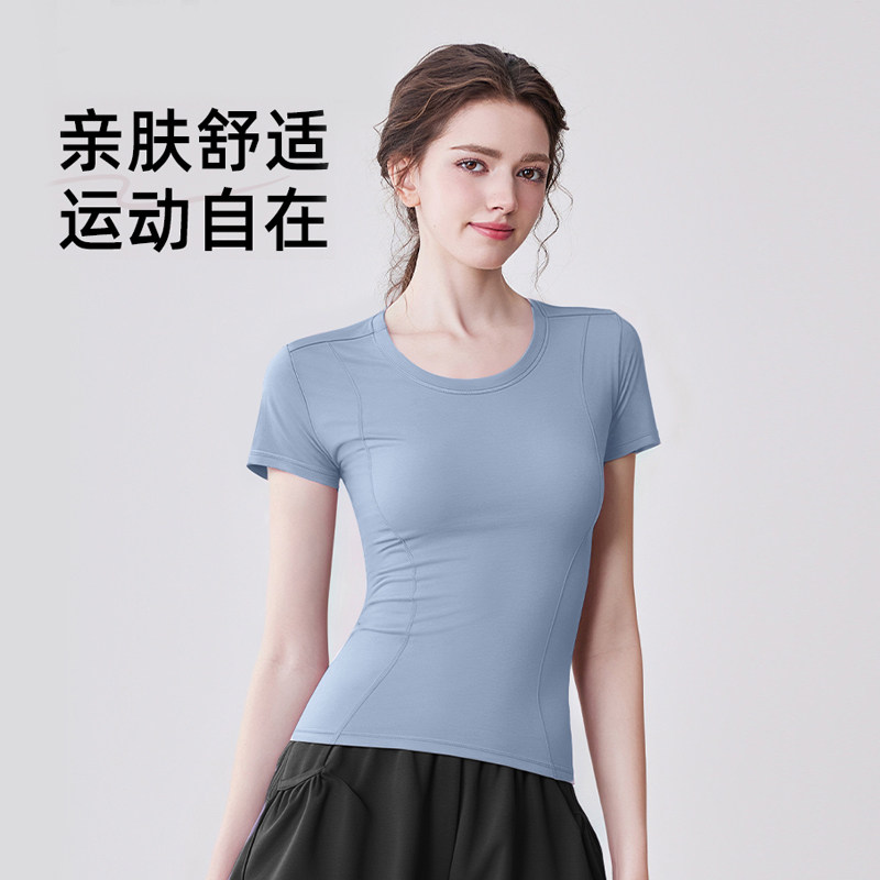 带胸垫瑜伽服女普拉提训练健身上衣2025新款运动跑步套装短袖T恤