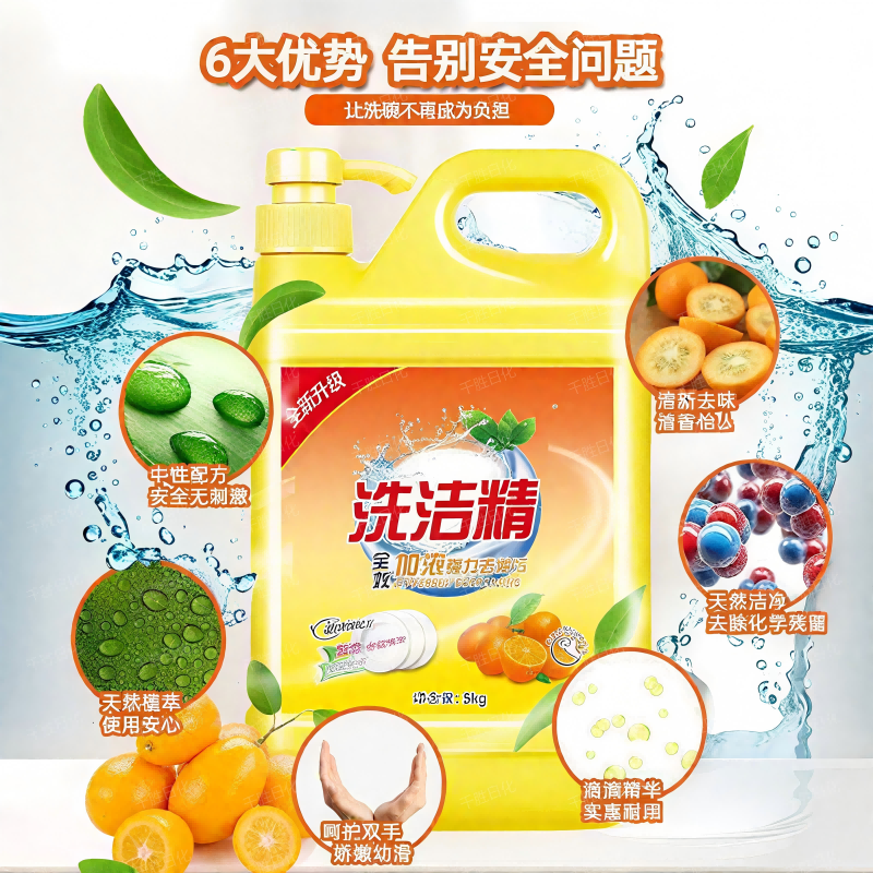 冷水去油家用洗洁精食品级家庭装厨房餐具洗碗果蔬不伤手清香