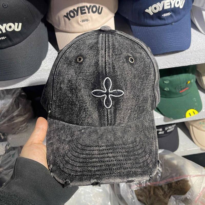 暗黑辣十字花牛仔棒球帽街头辣妹遮阳弯檐帽鸭舌帽女新款秋季水洗