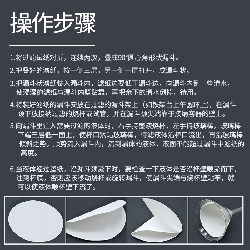 大张定性定量滤纸7/9/11/12.5/15/18CM100张/盒快中慢速机油试纸
