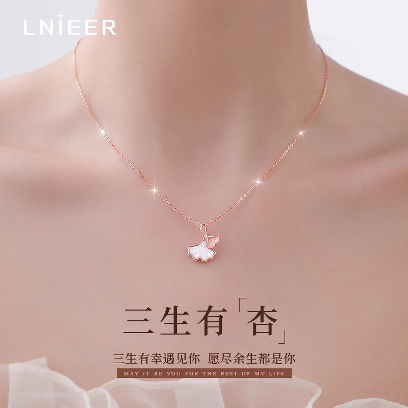 S999纯银三生有杏项链女2025爆款轻奢气质高级感锁骨链送女友礼物